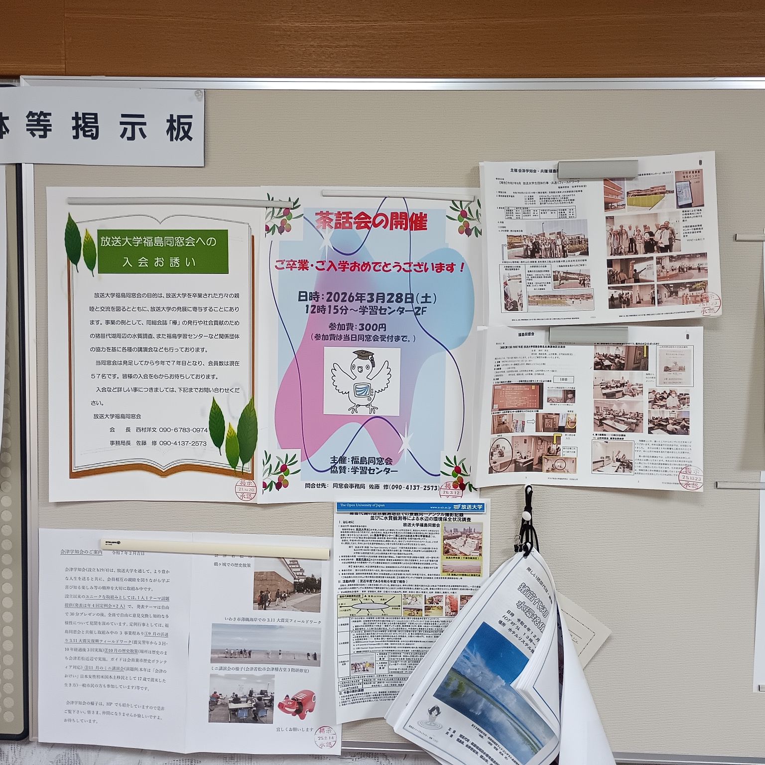 20260328(土)12:15~茶話会 主催:福島同窓会、協賛:福島学習センター 場所:福島学習センター2F講義室