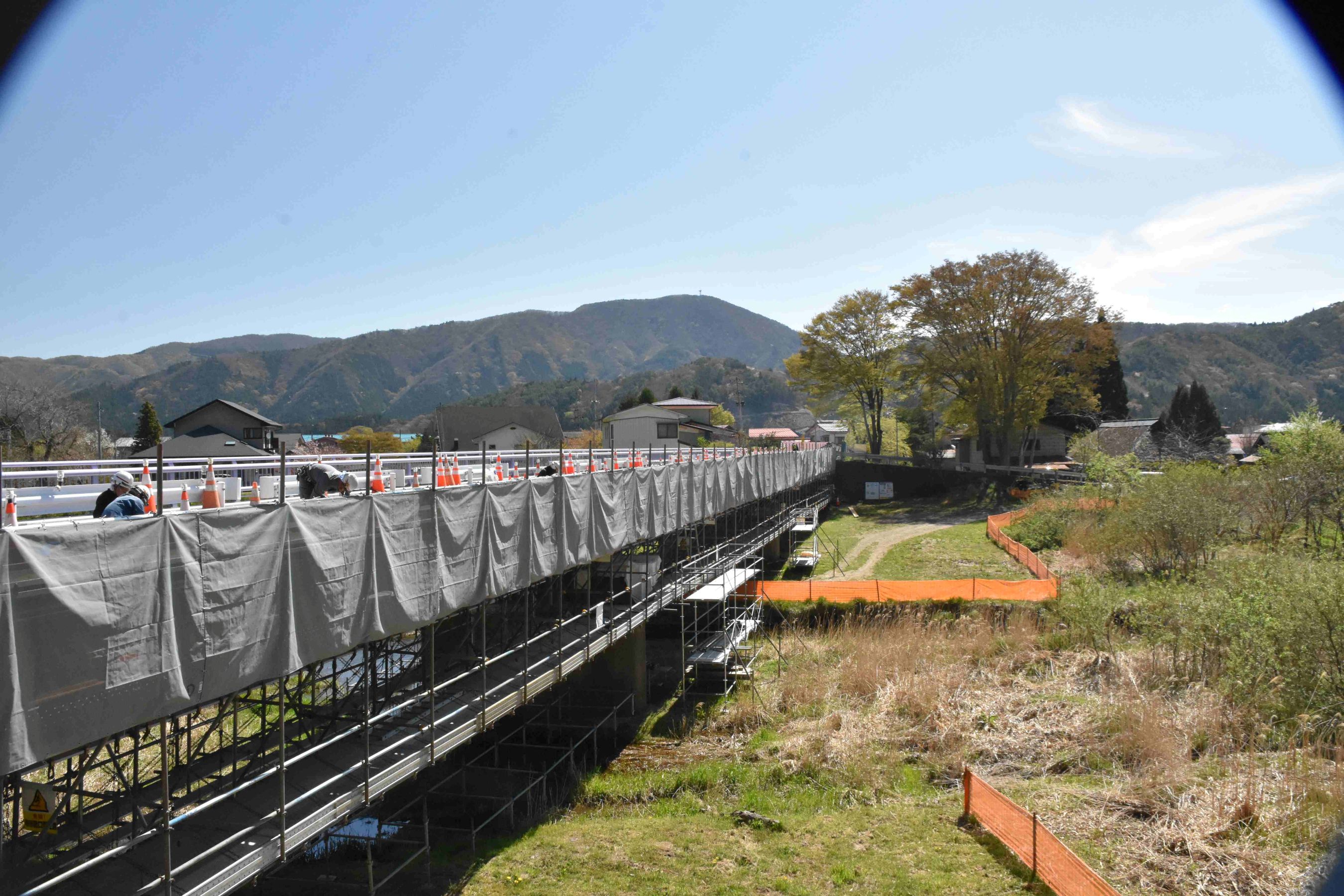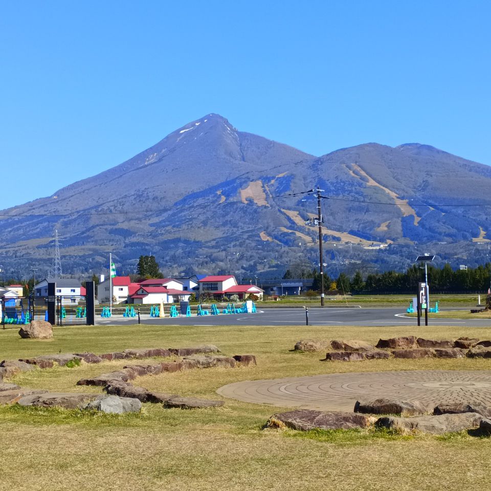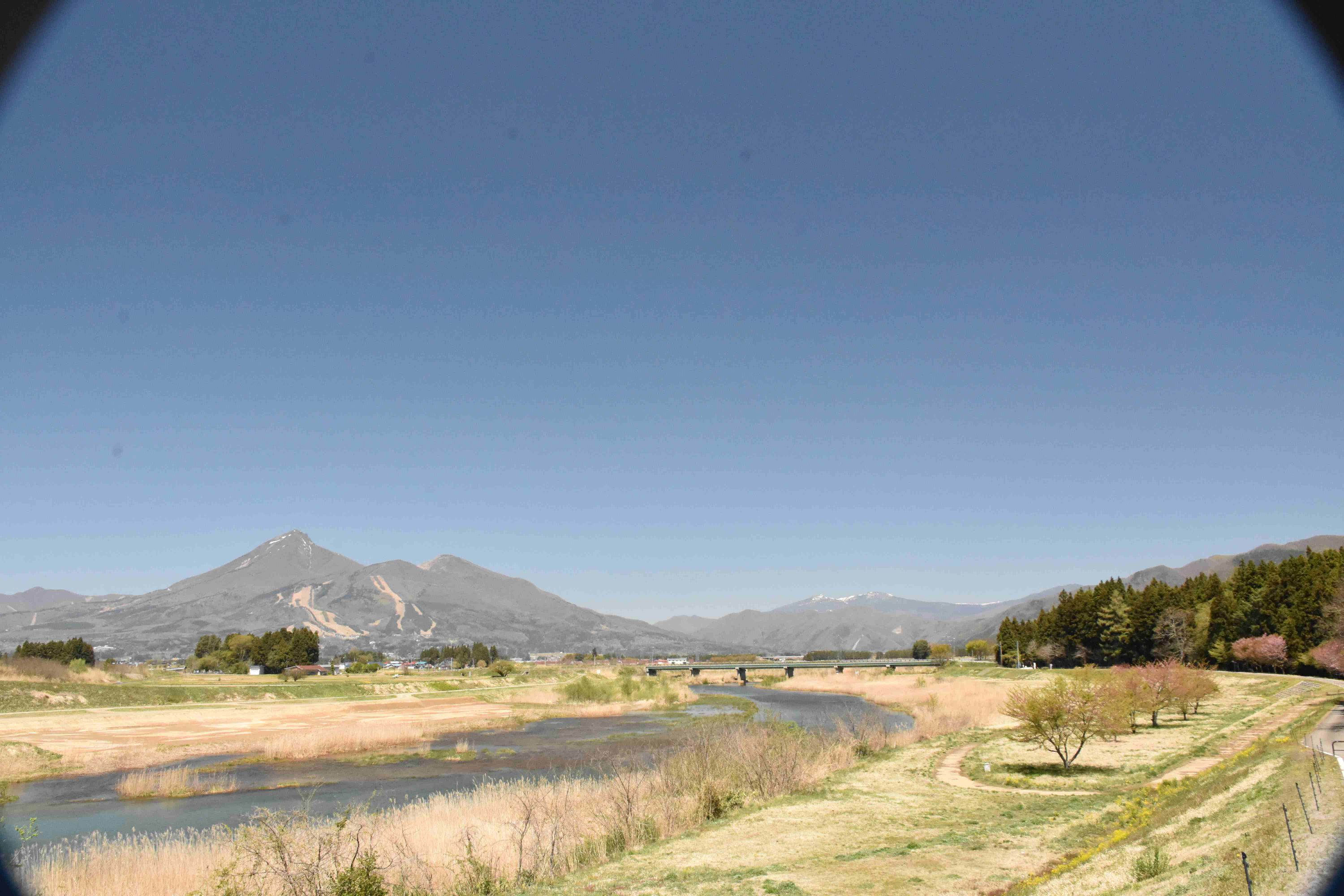 長瀬川から会津磐梯山 曇って頂上は望めなかった。