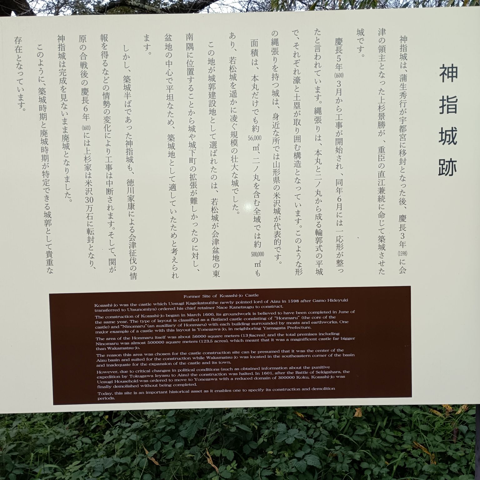 神指城の説明文(上杉景勝の幻の城)市・神指町高瀬五百地