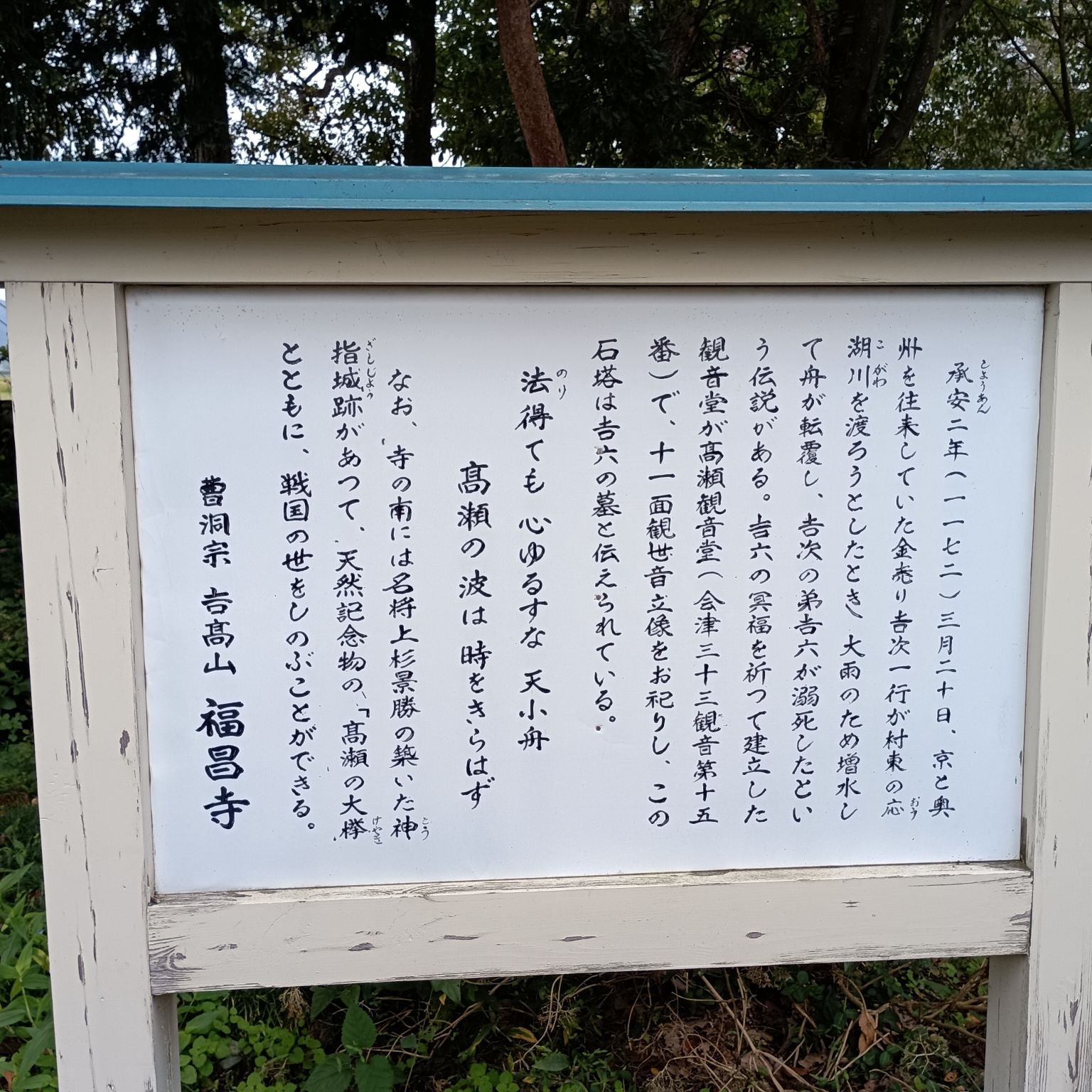 福昌寺 会津三十三観音第一五番 高瀬観音堂がある。