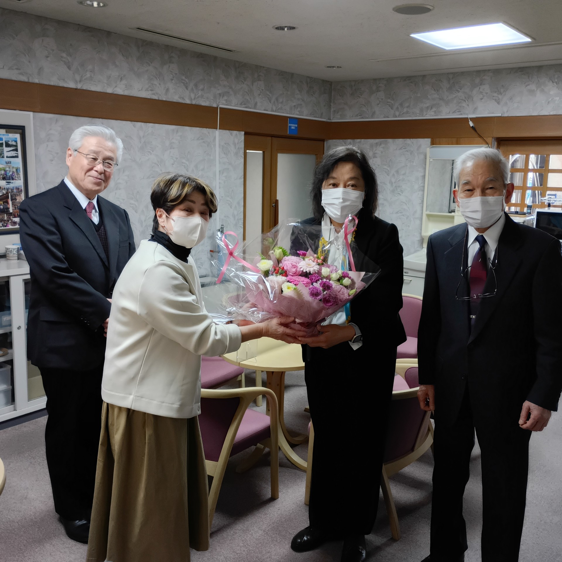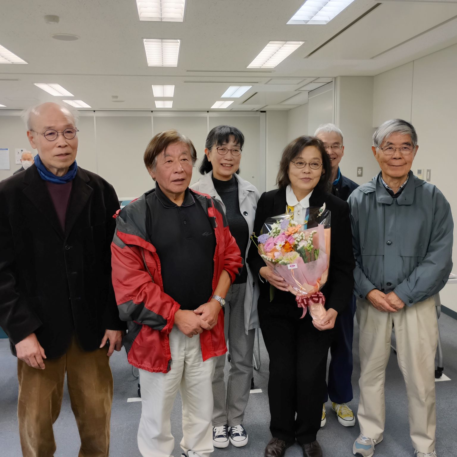 中田所長を囲む有志の皆様 花束贈呈