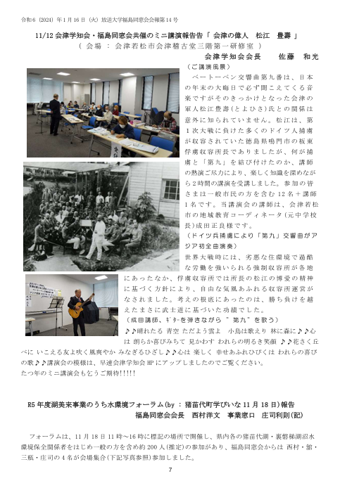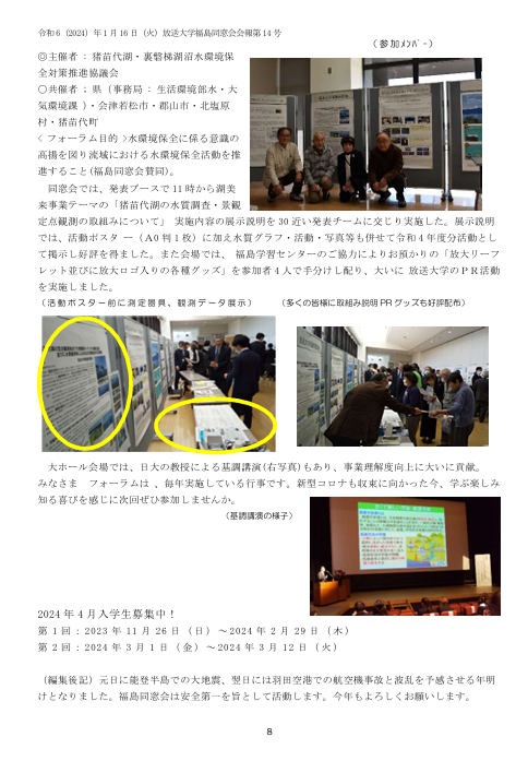 フォーラム(猪苗代湖・裏磐梯湖沼水環境保全フォーラム)
